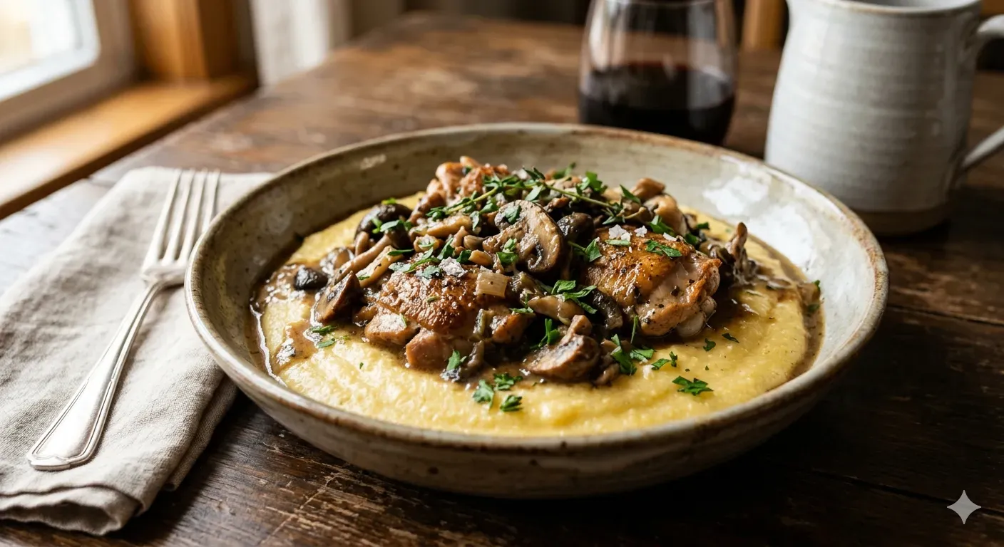 Sauté de poulet aux champignons et polenta crémeuse