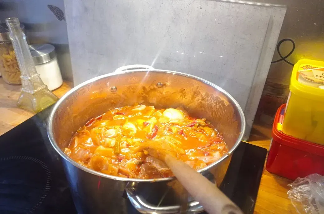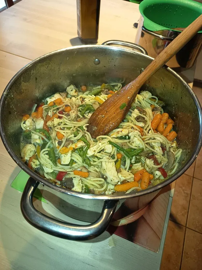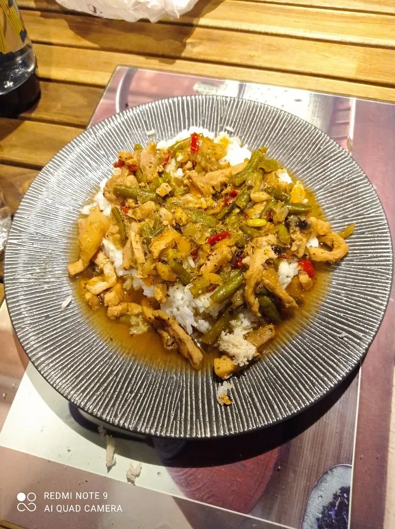 Émincés de poulet,oignons,poivrons et sauce curry